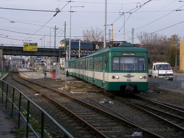 vonat jár ki a végállomásról, fölötte egy tehervonat halad el Kelebia felé