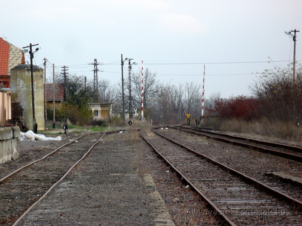 A második vágány peronján állva.Az első a rakodó vágány.Háttérben látható az útátjáróhoz tartozó teljes sorompó , amelyet a mellette látható váltóőrhelyről kezeltek.