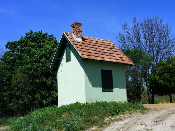 A kihúzóvágány vége után álló felvételi épület nézete Nagycenk felől.
