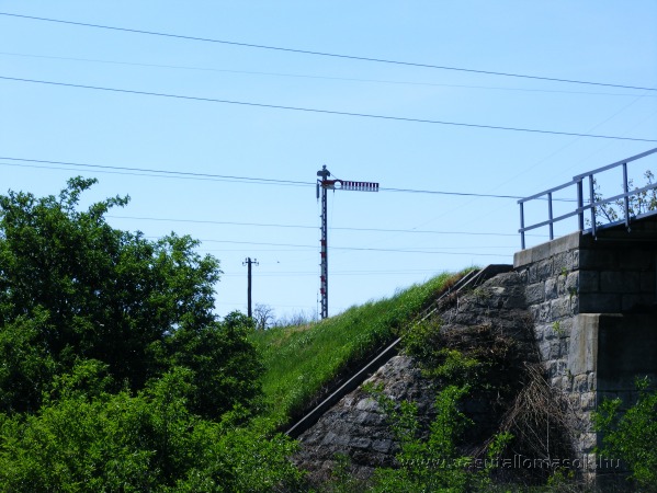 A jobb parti hídfő után található az állomás bejárati jelzője.