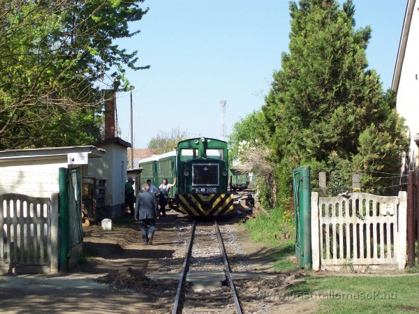 Vonat jár ki Fatelep állomásról az áprilisi megnyitón.