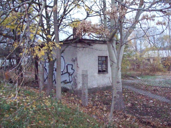 A kis épület lényegében a MÁV-Járműjavító nevű buszmegálló háta mögött áll.