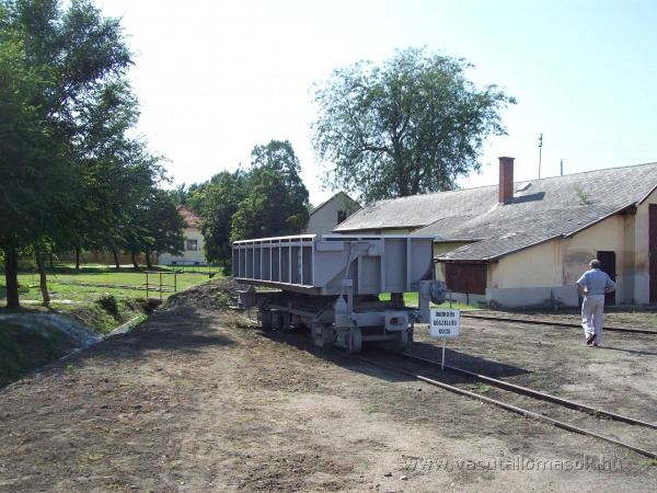 Dombrád, Uba kocsi a skanzenben. A kocsi mögött, a fűtőház előtt a dombrádi delta egyik ága, illetve annak hídja is látható.
