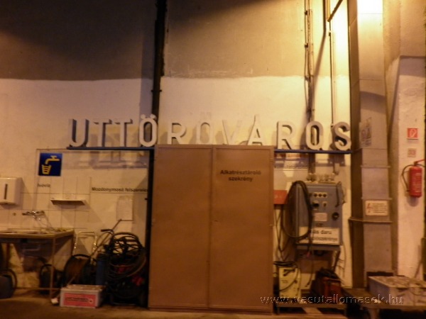 A régi állomástábla a hűvösvölgyi fűtőházban