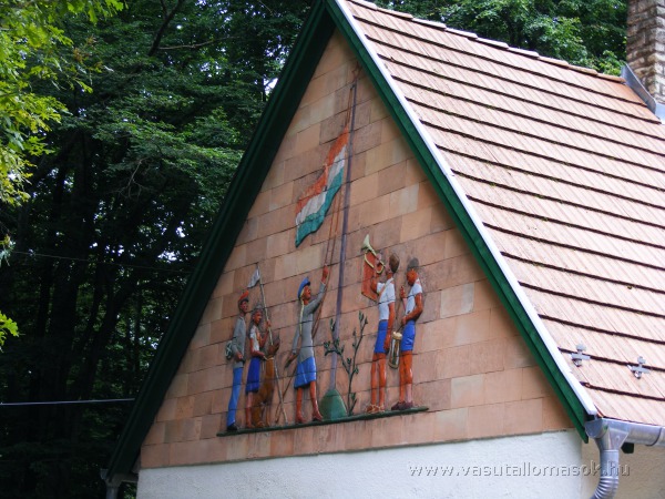 A felvételi épület oldalán lévő régi időket idéző dombormű.