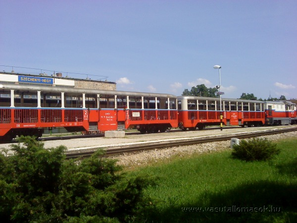 Mk45-2005-ös psz. mozdony és "frissen" érkezett szerelvénye körüljárás előtt az állomáson.