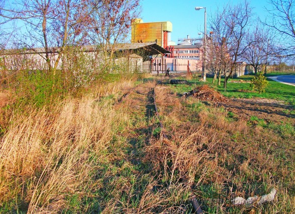A zichyújfalui gyárba vezető sínek. Látszik rajta, hogy már használaton kívül van.