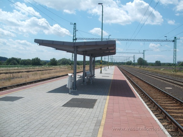 A 3-4. vágányok közötti esőbeálló és peron Boba felől nézve.