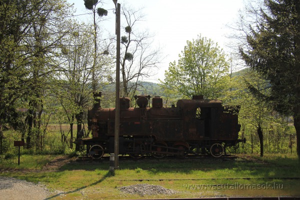 Kiállított gőzmozdony romos állapotban