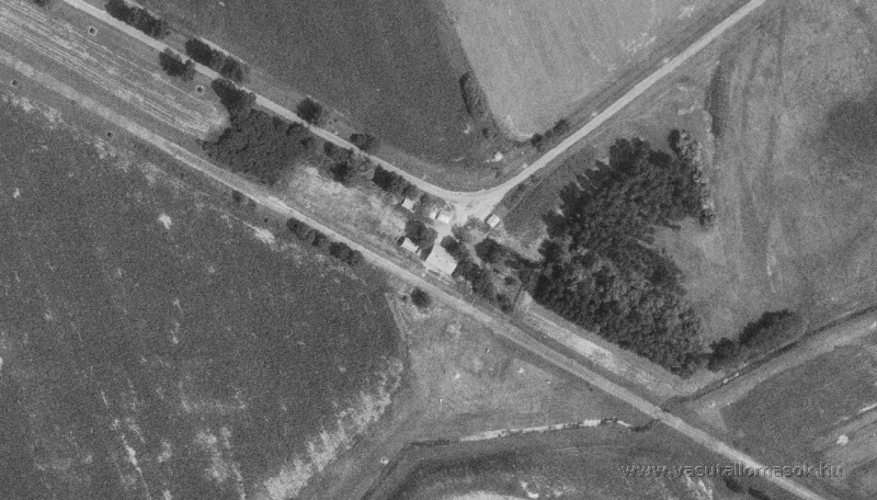 Bajonta mh. légifelvételen. Látszik a rakodóvágány a két vágányzáró sorompóval.