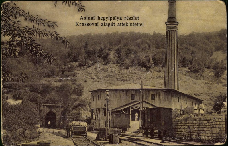 Krassova-Gerlistye állomás az alagúttal, melyből kijövet a váltó egyenes állásában a vonal vágánya egyből meredek lejtővel, ívben eltér a bevágásba, az állomás maga kitérő irányban érhető el Anina felől. „Aninai hegyipálya részlet / Krassovai alagút áttekintettel” Forrás: Arcanum Hungaricana képeslapgyűjtemény, http://postcards.hungaricana.hu/hu/274924/ Feltöltötte: Capras Dávid 58017.