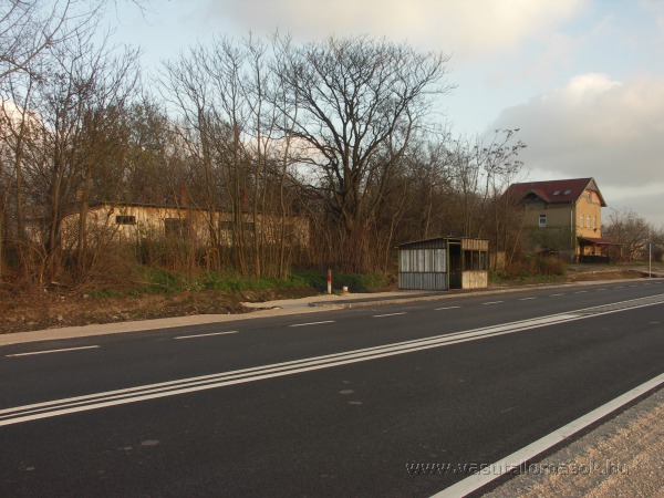 Dunapentele felvételi épülete és a raktárépület észak-északnyugat felől, előttünk a nemrégiben átépített 62-es főút, és a Pálhalma bejárati út autóbuszmegállógely rozsdás aljú bódéja, friss hegesztéssel leerősítve : ) Fotó: Capras Dávid