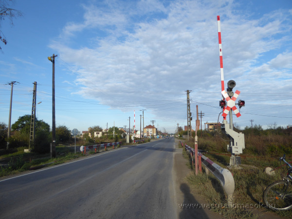 Fénysorompóval és félsorompóval biztosított útátjáró a Holdea felőli oldalon.