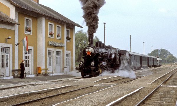 Drégelypalánk állomása 324-es gőzössel és a háttérben megbúvó BCmot-tal a 2000-es évek elején. Fotó: W.+H. Brutzer.