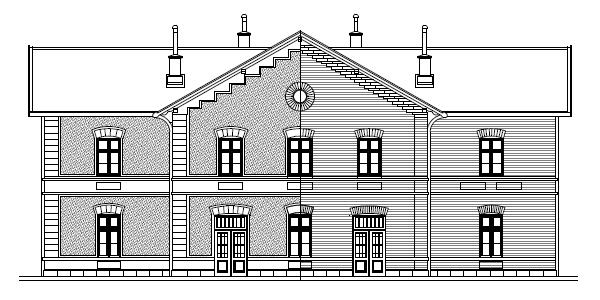 Magyar Királyi Államvasutak 1880. évi fővonali típustervsorozat II. osztályú felvételi épület [ I. osztály ] [ II. osztály ] [ III. osztály ]
