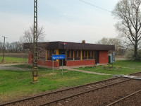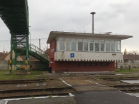 Állomásnév-tábla és a jelzőberendezés szekrénye