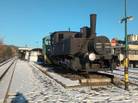 A salgótarjáni acélművek egykori ipari mozdonyai a peronon töltik nyugdíjas éveiket.