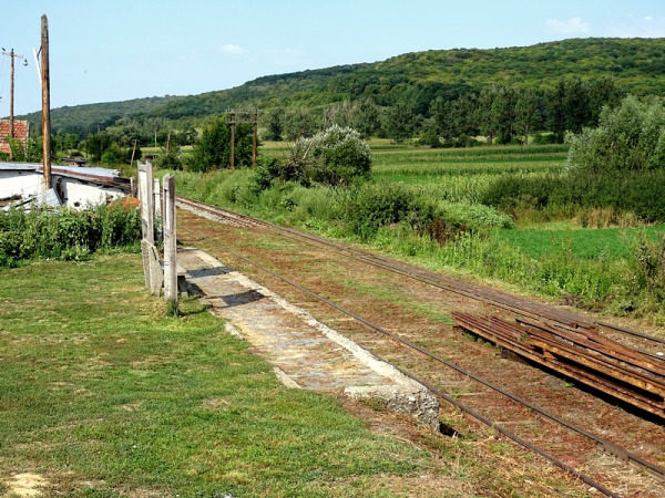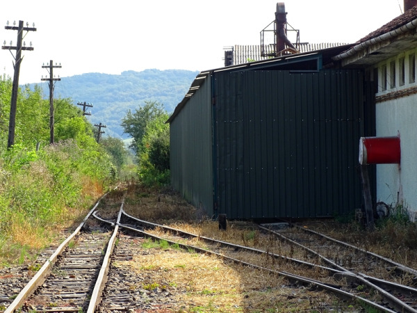 Az egykori raktárépület már nem létezik, csak a rámpája dacol a múló idővel. Ezen a rámpán, amit első pillantásra peronnak néztem, az egyik oldalán a kisvasutat, a másikon a települést ismertető információs táblát helyeztek el. A vonatok a második vágányra érkeznek és onnan is indulnak vissza.